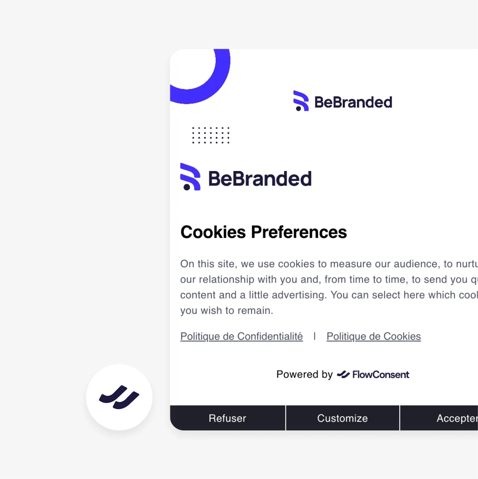 Votre bannière de cookies doit correspondre à votre site et ne pas ressembler à une fenêtre contextuelle générique. Personnalisez tout : couleurs, textes, positions, animations. Aperçu en temps réel. Créez une expérience cohérente qui respecte votre image de marque.